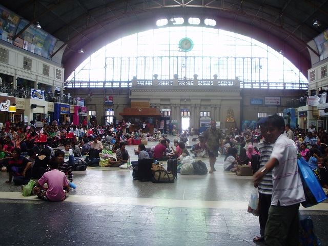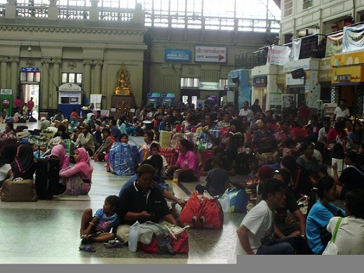 まず、アユタヤ行きの始発点、ファランポーン駅のホームに到着した際の、この被災地ともいえるような光景に驚かされました。